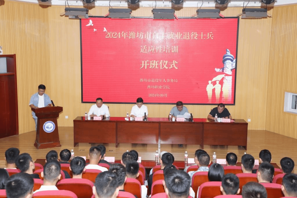 9月23日上午,潍坊市2024年自主就业退役士兵适应性培训在公司奎文校区开班。潍坊市退役军人事务局党组书记、局长李磊,公司党委副书记韩瑞东,公司党委委员、副经理付一明,潍坊市退役军人事务局党组成员、副局长赵允生,退役军人事务局、公司bv伟德国际体育、退役军人职业教育公司相关负责人及2024年自主就业退役士兵137人参加了开班仪式。